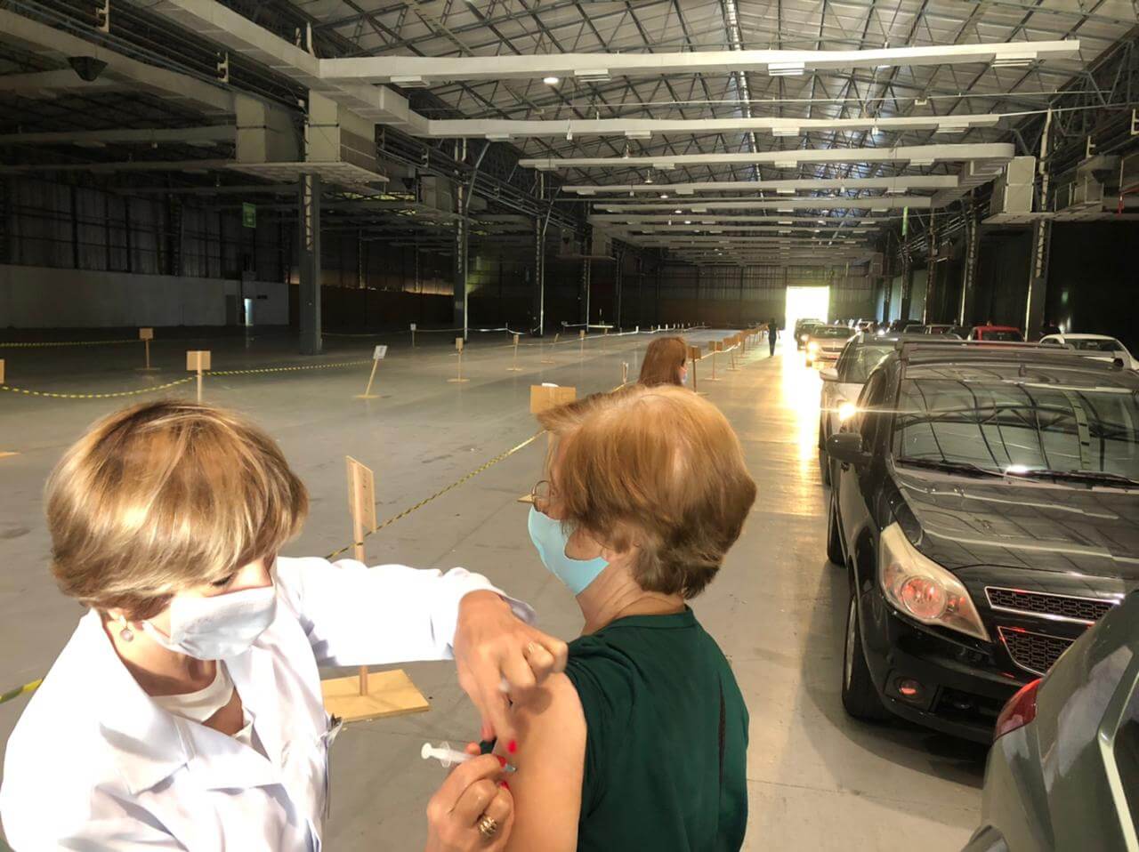 Neste domingo (21), foi realizada mais uma etapa da Campanha de Vacinação contra o coronavírus. Os idosos acima de 83 anos, foram imunizados no formato drive-thru, nos pavilhões da Fundaparque. De acordo com os dados da Secretaria da Saúde, 551 idosos foram vacinados.