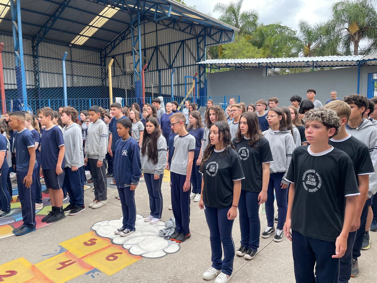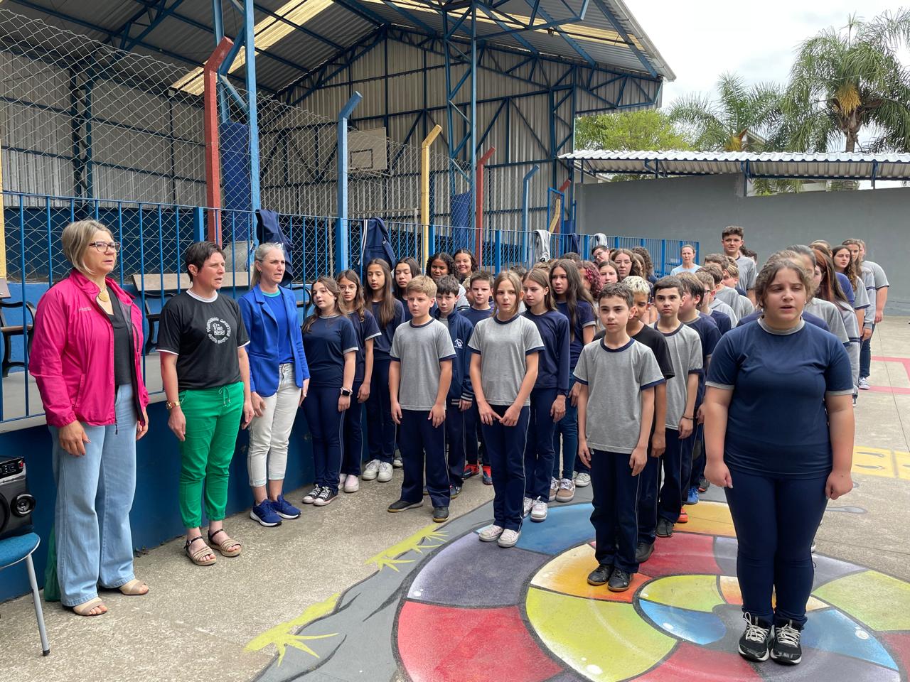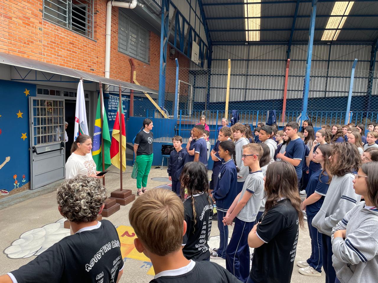 Na manhã desta segunda-feira, 1º de dezembro, ocorreu na EMEF Agostino Brun, momento cívico que prestou homenagens à aluna Ana Laura Zanatto e a professora de Matemática Elisa Ariotti que foram medalhistas de ouro na Maratona Tech. Na ocasião, foram entoados os Hinos Nacional e do próprio educandário (com letra e arranjos feitos pelo músico Rodrigo Soltton).