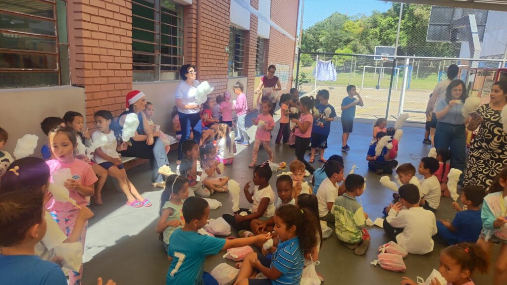 A EMEF Princesa Isabel viveu, na última semana, um momento de emoção e generosidade com a ação social promovida por Joana Albanese Pozza, que realizou a 4ª edição do projeto voltado a crianças de diferentes idades. A iniciativa presenteou mais de 400 alunos da escola com kits de Natal, compostos por roupas íntimas e doces. O clima festivo tomou conta do pátio, onde parceiros da ação também distribuíram pipoca e algodão-doce, garantindo ainda mais alegria ao evento, que se transformou numa verdadeira celebração antecipada do Natal. As crianças retribuíram o carinho com gestos de gratidão, abraços e apresentações especiais, emocionando todos os presentes. Para a diretora da escola, Jaqueline, iniciativas como essa têm sido fundamentais para aproximar a comunidade escolar e fortalecer os laços com as famílias. “Agradeço a todos que sempre estão ajudando. A maior recompensa é ver a alegria das crianças”, afirmou a diretora. A idealizadora da ação, Joana Albanese Pozza, destaca que o projeto, já consolidado em sua quarta edição, é uma oportunidade de espalhar amor e solidariedade. “É um momento único de demonstrar amor ao próximo. É muito gratificante receber o carinho das crianças e ver o sorriso delas”, disse Joana, emocionada. O dia especial ficará guardada na memória dos alunos e reforça a importância de iniciativas que unem solidariedade, comunidade e esperança, especialmente nesta época do ano. Fotos: Divulgação/EMEF Princesa Isabel