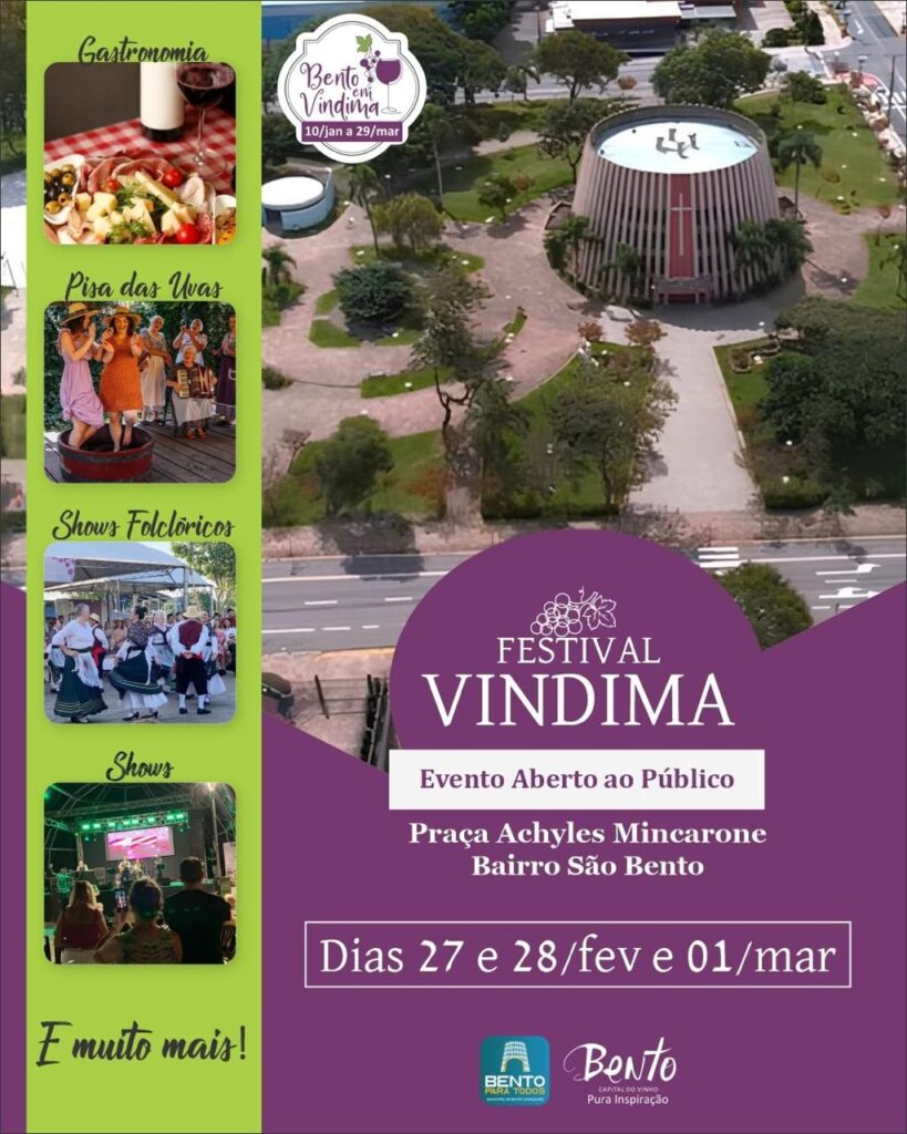 A programação do Bento em Vindima teve início em janeiro e segue com atrações até 29 de março, levando o clima festivo para o interior do município e para diversos empreendimentos. Nos dias 27, 28 de fevereiro e 1º de março, a Capital Brasileira do Vinho vivencia mais um capítulo dessa celebração especial. A Praça Achyles Mincarone, no bairro São Bento, será palco do Festival Vindima e do Festival do Suco de Uva. A programação reúne gastronomia, artesanato, pisa das uvas, dança e diversas atrações culturais, celebrando as tradições que marcam o período da colheita. O Festival Vindima se une ao Festival Bento, realizado pela DWR Som, Luz e Imagem por meio do Pró-Cultura. Dentro da parceria, no dia 27, o público poderá conferir os shows de Rock de Galpão e Banda Elixir. Já no dia 28, sobem ao palco Rosa Tattooada e Farina Brothers. No dia 1º, a atração será Tati Freitas e Filipe Girardi. O evento também contará com a animação da Nona Gema, garantindo ainda mais interação com o público. Em homenagem ao Dia Municipal e Regional do Suco de Uva, celebrado no primeiro domingo de março, ocorre no dia 1º, das 10h às 20h, o Festival do Suco de Uva. A programação inclui apresentações artísticas, brinquedos infláveis e a participação de vinícolas comercializando seus produtos, além de outras atrações voltadas a toda a família. A proposta da data é incentivar ações de promoção do suco de uva, destacando seus benefícios à saúde, fomentando o turismo, fortalecendo a economia local e contribuindo para o aprimoramento da cadeia produtiva da uva. Para o secretário de Turismo, Henrique Nuncio, “serão três dias com uma programação repleta de atrações, marcando o período da Vindima e levando à Praça São Bento shows, gastronomia, pisa das uvas e atividades típicas dessa época tão especial para o município. Deixamos nosso convite especial para a comunidade e os visitantes para aproveitarem o período”. Confira a programação: Dia 27 de fevereiro – Festival Vindima A partir das 17h 19h Banda Elixir Projeto Festival Bento – 3ª edição 20h Rock de Galpão Projeto Festival Bento – 3ª edição Dia 28 de fevereiro – Festival Vindima A partir das 10h 13h Willian Hamon e banda 15:30 Grupo Ricordi D’Itália 16h Pisa da Uva 17h Farina Brothers – Projeto Festival Bento – 3ª edição 18:30 Rosa Tatooada – Projeto Festival Bento – 3ª edição Dia 1º de março – Festival do Suco de Uva A partir das 10h 11h Grop di Danze Furlane 14h Grupo Amigas da Alma 15h Show Le Farfale 16h Pisa da Uva 17h Filipe Girardi – Projeto Festival Bento – 3ª edição 18:30 Tati Freitas – Projeto Festival Bento – 3ª edição Assessoria de Comunicação Social Prefeitura