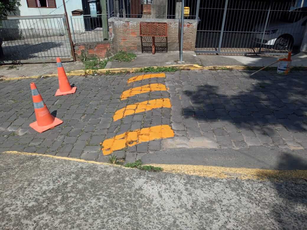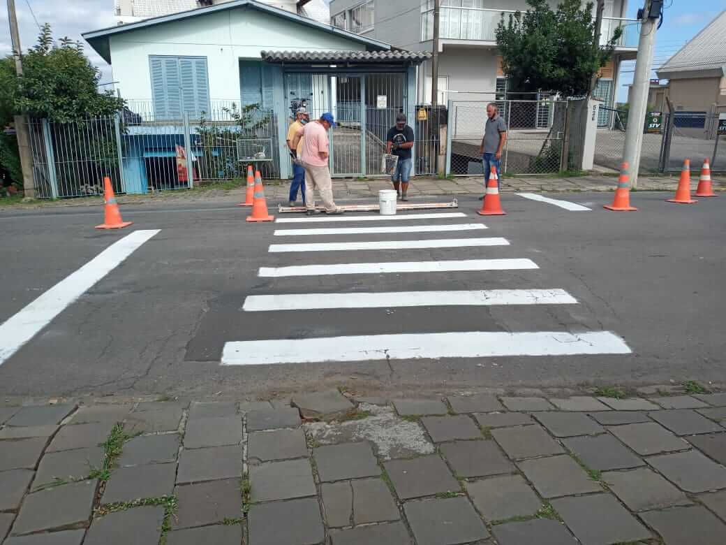 A Secretaria de Gestão Integrada e Mobilidade Urbana segue com os serviços de pintura e manutenção da sinalização nos bairros do Município. São realizadas a pintura de faixas de segurança e no entorno das escolas, já preparando para o retorno das aulas no próximo mês.