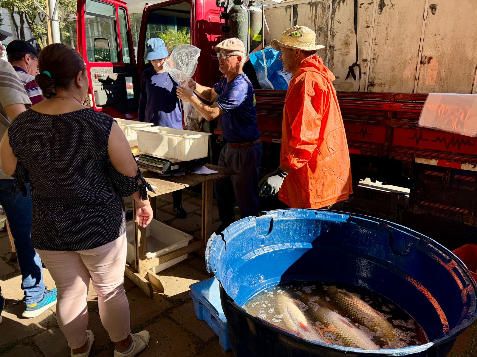 O secretário Luis Carlos De Mari esteve acompanhando o início da comercialização. “É um momento já tradicional que antecede a sexta-feira Santa e uma oportunidade da população comprar peixes frescos e de produtores da região”, disse.