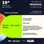 No dia 24 de setembro, a partir das 19h, no Ponto de Cultura mencionado, terá a roda de conversa sobre o livro “Desastres Naturais no RS e Museus” (SEM/RS), abordando sobre os impactos da crise climática e debatendo estratégias coletivas de prevenção e gestão de riscos.
