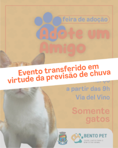 A edição do Bento Pet- adote um amigo, exclusiva para gatos que ocorreria neste sábado (07), na Via del Vino,...