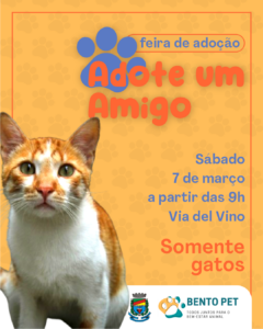 No sábado (07), será realizada na Via del Vino a edição do Bento Pet- adote um amigo, exclusiva para gatos....