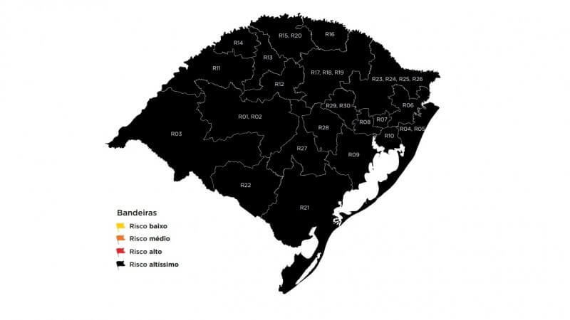 A decisão pela bandeira que representa risco altíssimo para velocidade de propagação do vírus e esgotamento da capacidade hospitalar, em todas as regiões.