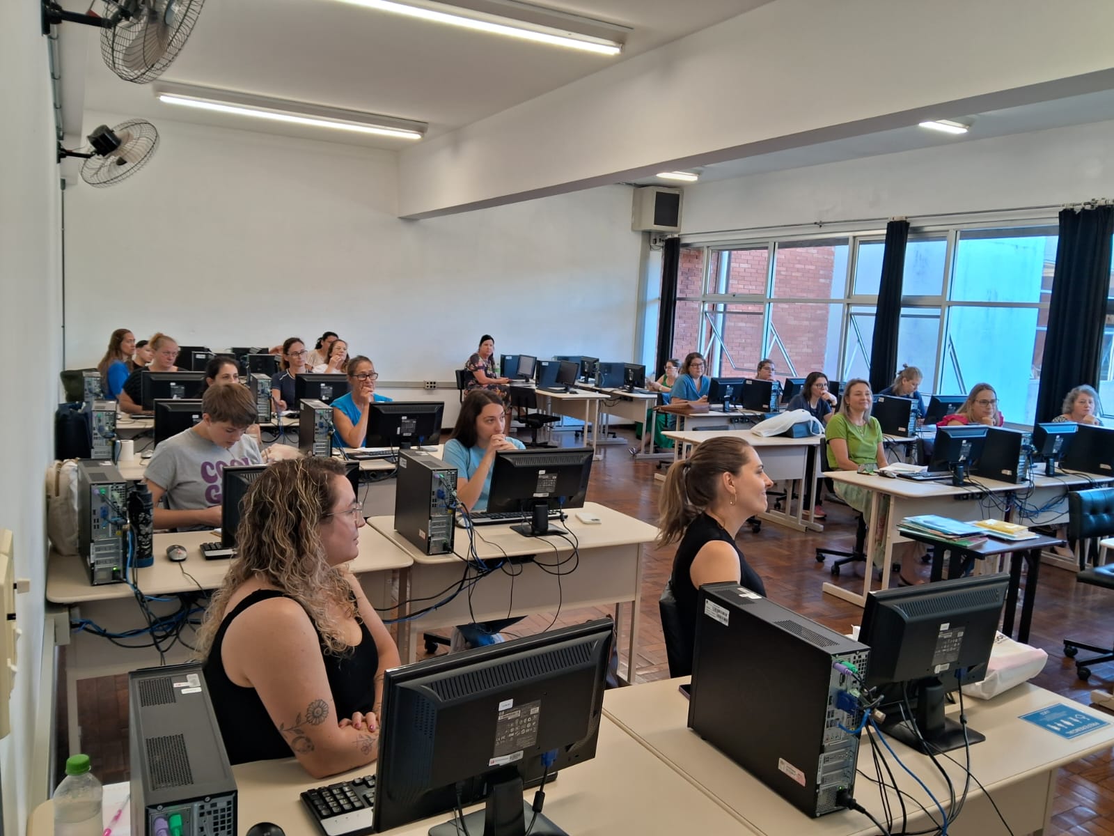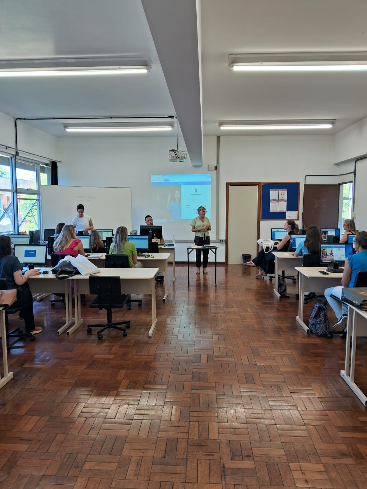 Nesta quinta-feira (05), a Secretaria de Educação iniciou a formação continuada para as auxiliares de bibliotecas da rede municipal de ensino com foco na gestão de bibliotecas escolares, uso de sistemas informatizados, mediações de leituras e valorização da Literatura Infantil. A capacitação ocorre no Laboratório de Informática da Universidade de Caxias do Sul – Campus Bento Gonçalves e terá mais quatro encontros ao longo de 2026.