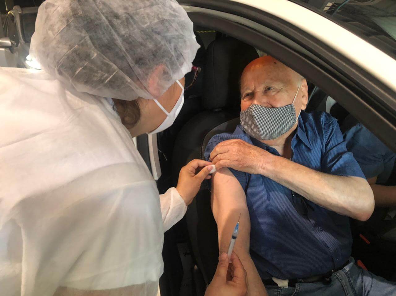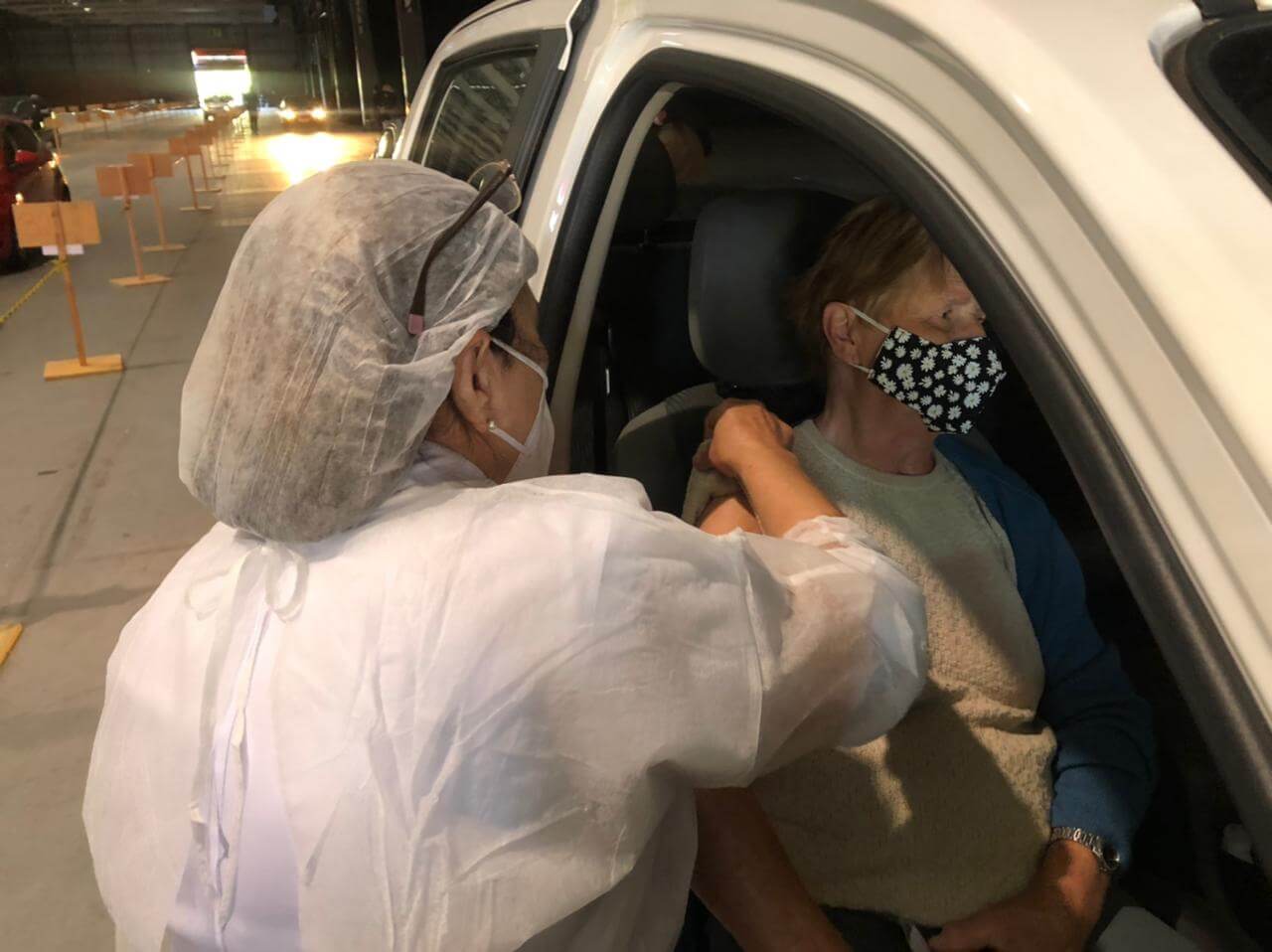 Neste domingo (07), foi realizada a aplicação da segunda dose da vacina contra o coronavírus, para os idosos acima de 85 anos, vacinados nos dias 13 e 14 de fevereiro. Cerca de 685 pessoas foram imunizadas em mais uma etapa da Campanha realizada no formato drive-thru, nos pavilhões da Fundaparque.
